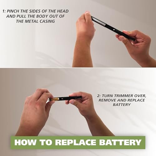 Wahl’s 2-in-1 Micro Groomsman is the complete ear and nose hair trimmer for men that will meet all your styling and grooming needs. Perfect for trimming beards, nose, and ear hair, we’ve thought of everything you could need to recreate your favorite styles every time at home, traveling, or on the go! The Wahl 2 in 1 Pen Trimmer includes Detail Head, Rotary Head, Eyebrow Guide, Protective Cap, & English & Spanish Instructions. Our micro personal trimmer features superior blades, rugged anodized aluminum housing, with enough performance, power, & run time to achieve the perfect look on the go or at home. Perfect for facial hair detailing with the Detail Head; Perfect for any area needing light hair removal such as nose, ear, brow, sideburn, toes, & touch-ups on the neckline. To change out the AAA battery simply remove cap, hold trimmer body with one hand and pinch the trimmer head with your index finger and thumb with the other hand then gently pull up on the trimmer head. This will give you access to the battery tray. Replace bad battery and simply slide trimmer back into the metal sleeve. To remove the trimmer head pinch the head between your index finger and thumb then turn counterclockwise a quarter turn and lift away from the trimmer body. To replace the head, align the notches on the head with the channel on the trimmer body, press down and turn a quarter turn clockwise until it locks into place. Wahl clippers & trimmers are available in a variety of styles to meet your home hair cutting needs. From Lithium-Ion cordless & rechargeable clippers to heavy-duty corded models, Wahl nose trimmer for men deliver a high-performance cut every time. Wahl clippers and trimmers have been used by professionals in the salon & barber industry since 1919. With self-sharpening precision blades & quality construction, Wahl clippers, shavers & trimmers deliver a smooth shave. The eyebrow trimmer for men in packaging may not be the same as photo due to continuous improvements to the product. Note: We test our trimmers for cutting performance prior to packaging with a hygienic fiber. We do our best to clean the product to remove any testing particles, but it is possible a few may remain. They are not hair and can be simply wiped off.