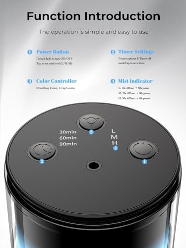 Waterless Diffuser Game-Changer: The diffuser uses cold nano-mist tech to zap oils into superfine fog instantly—zero heat, zero H2O. Keeps oils 100% legit,Long lasting aroma! Covers 500 sq ft library-quiet (<25dB). Ideal for sleep, yoga, zen time, or spa vibes. Way better than regular diffusers for home—no contest!