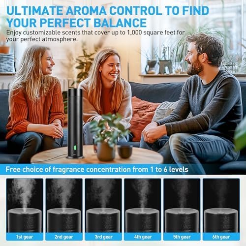 Vast Coverage with Customizable Scent Levels: Experience long-lasting and consistent scent coverage of up to 800-1,000 square feet. With six adjustable fragrance intensities, you can easily customize the fragrance concentration to suit your mood. Choose the scent strength that suits you best to create the perfect atmosphere